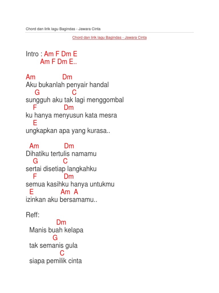 Chord Dan Lirik Lagu Bagindas Jawara Cinta Pdf